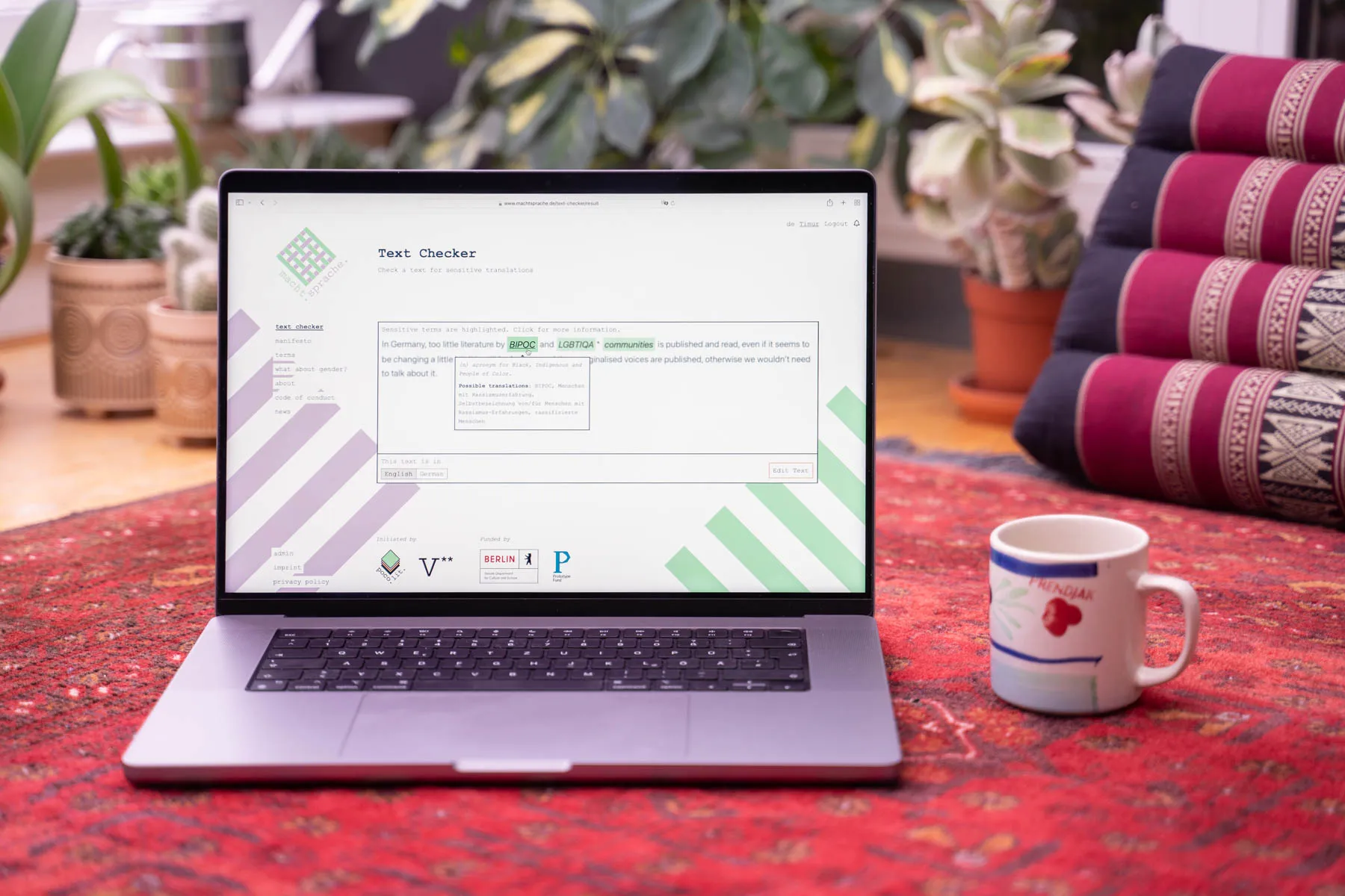 macht.sprache. helps you handle the challenges of politically sensitive language in English and German. The macht.sprache. database is unique in that it is crowd sourced by the community of users. The database powers the Text Checker as well as an extension for Chrome and Firefox hooking into DeepL and Google Translate.